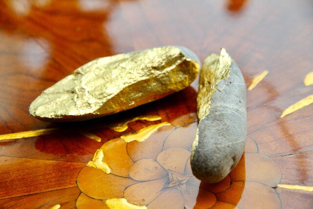 grosser Aarestein mit 24 Karat Blattgold vergoldet, Masse: Stein ca. 10x4x3cm/Sockel 6,5x6,5x7,5cm, Sockel wird auf Wunsch angefertigt, Versand 8,50CHF