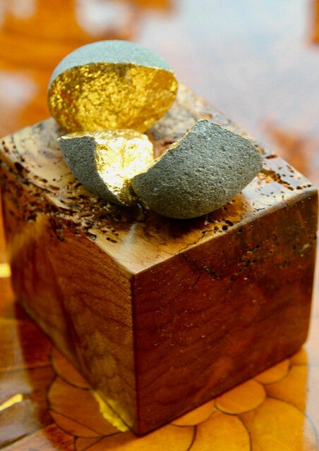 Aarestein, vergoldet, mit Sockel