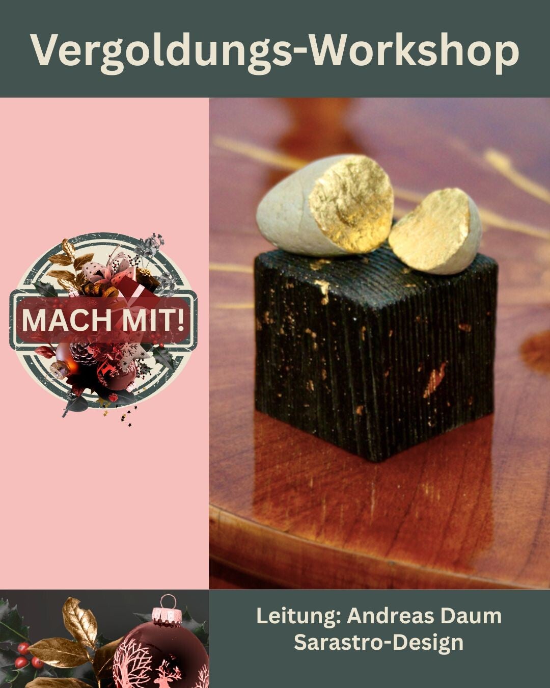 Mit einer kurzen Einführung in die Welt der Vergoldung, kann jeder Teilnehmer einen vorbereiteten Stein aus der Aare selber vergolden. Teilnahme-Gebühr: 30CHF -bitte hier buchen- Vielen Dank!